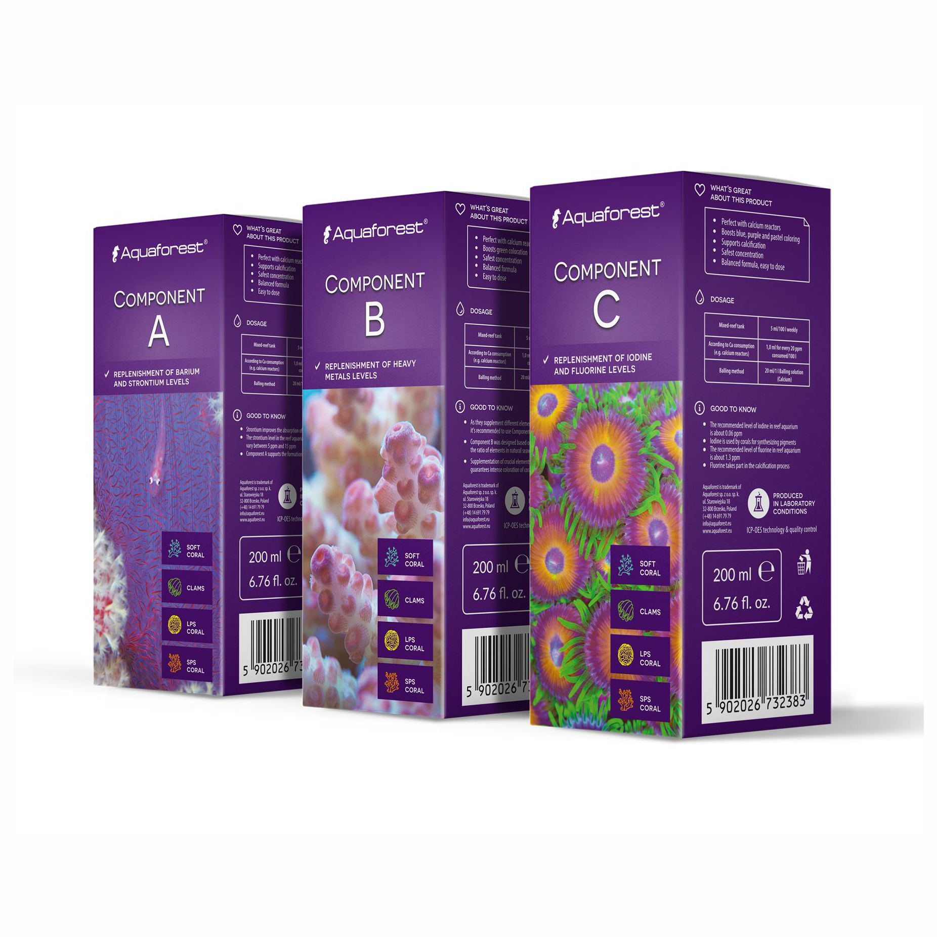 AF Component B 200ml przeznaczony jest do uzupełniania niewielkich niedoborów metali ciężkich w akwarium morskim. Zawiera: kobalt, miedź, chrom, mangan, wanad, cynk, nikiel, żelazo. W zamkniętym systemie akwariowym odpieniacz i media filtracyjne usuwają z wody pierwiastki śladowe, dlatego konieczna jest ich suplementacja. Unikalna kompozycja preparatu pozwala uzupełnić wodę w niezbędne w akwarium rafowym metale ciężkie. Zawartość i proporcje pierwiastków zostały określone w opraciu o skład naturalnej wody morskiej. Dzięki pierwiastkom śladowym koralowce pozostaną w świetnej kondycji i będą się cieszyć intensywnym wybarwieniem. Bezpieczne stężenie preparatu minimalizuje szanse na przedawkowanie mikroelementów, dzięki czemu Component B mogą stosować również początkujący akwaryści.