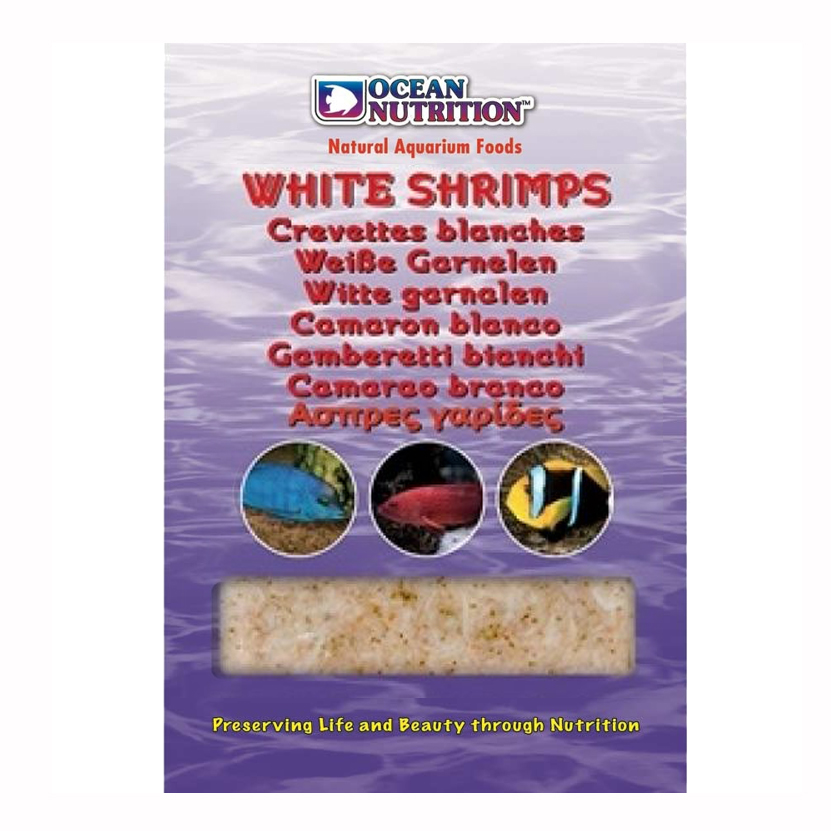 Frozen White shrimps 100g Ocean Nutrition to mrożone białe krewetki (Penaeidae) o długości 2–3 cm to wysokobiałkowy, naturalny pokarm przeznaczony dla większych ryb morskich i drapieżników. Dzięki odpowiedniemu rozmiarowi i wartościom odżywczym idealnie nadają się do urozmaicania diety ryb wymagających pokarmów mięsnych.
