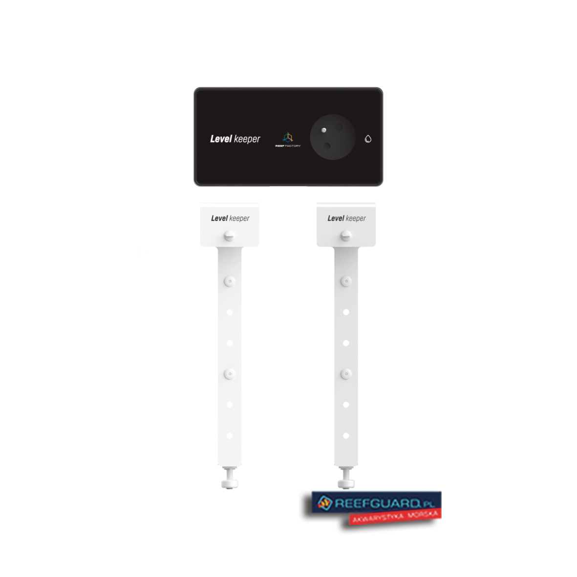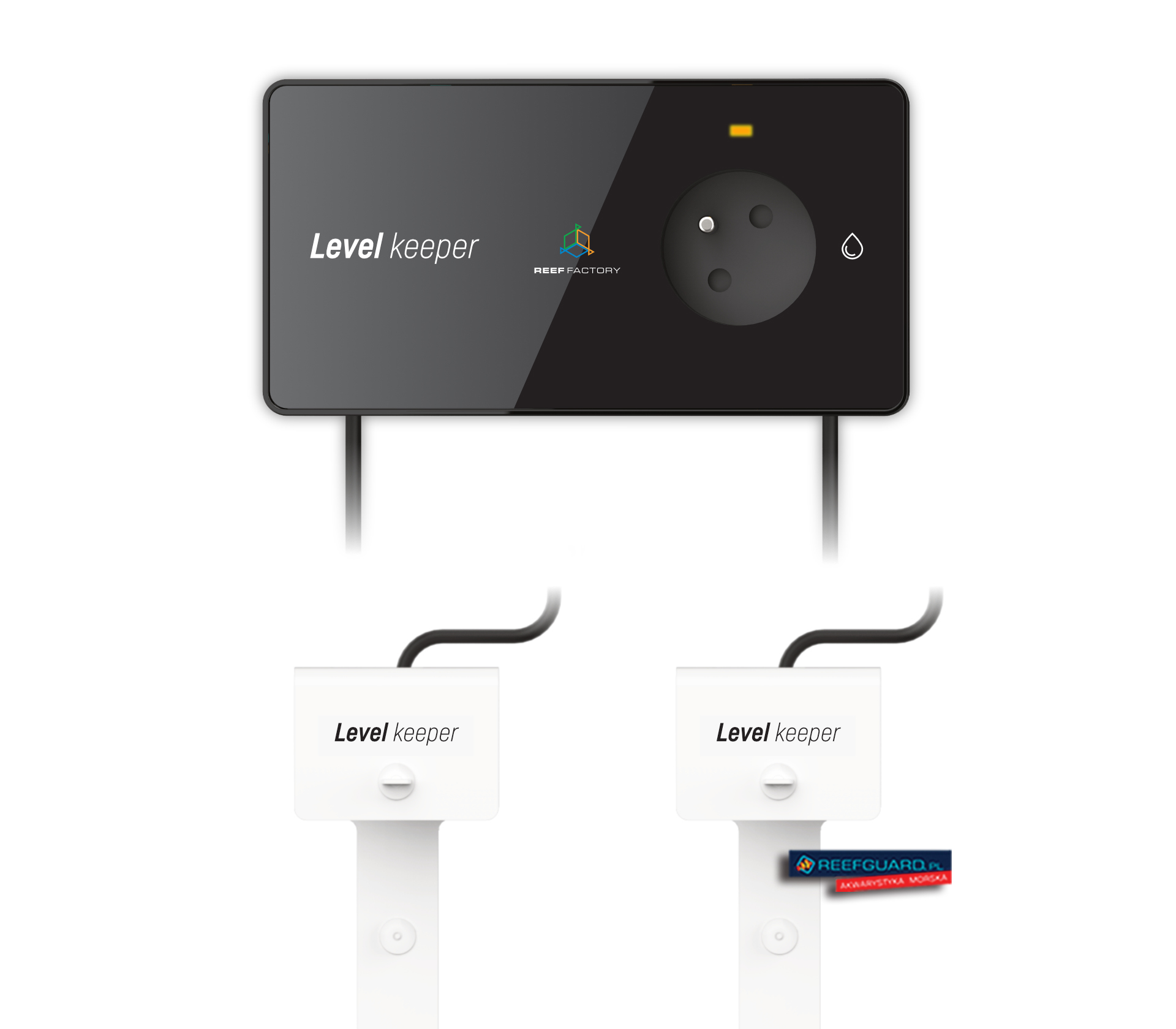 Reef Factory Level Keeper zaopatrzono w dwa czujniki monitorujące poziom wody. Powinny one zostać zainstalowane możliwie daleko od siebie, na nieco innych poziomach. Dzięki temu jednostka sterująca nie włączy zasilania pompy dolewki (brak pompy w zestawie) jeśli poziom wody spadnie tylko przy jednym czujniku. Taka sytuacja powstaje w wyniku falowania wody w akwarium.