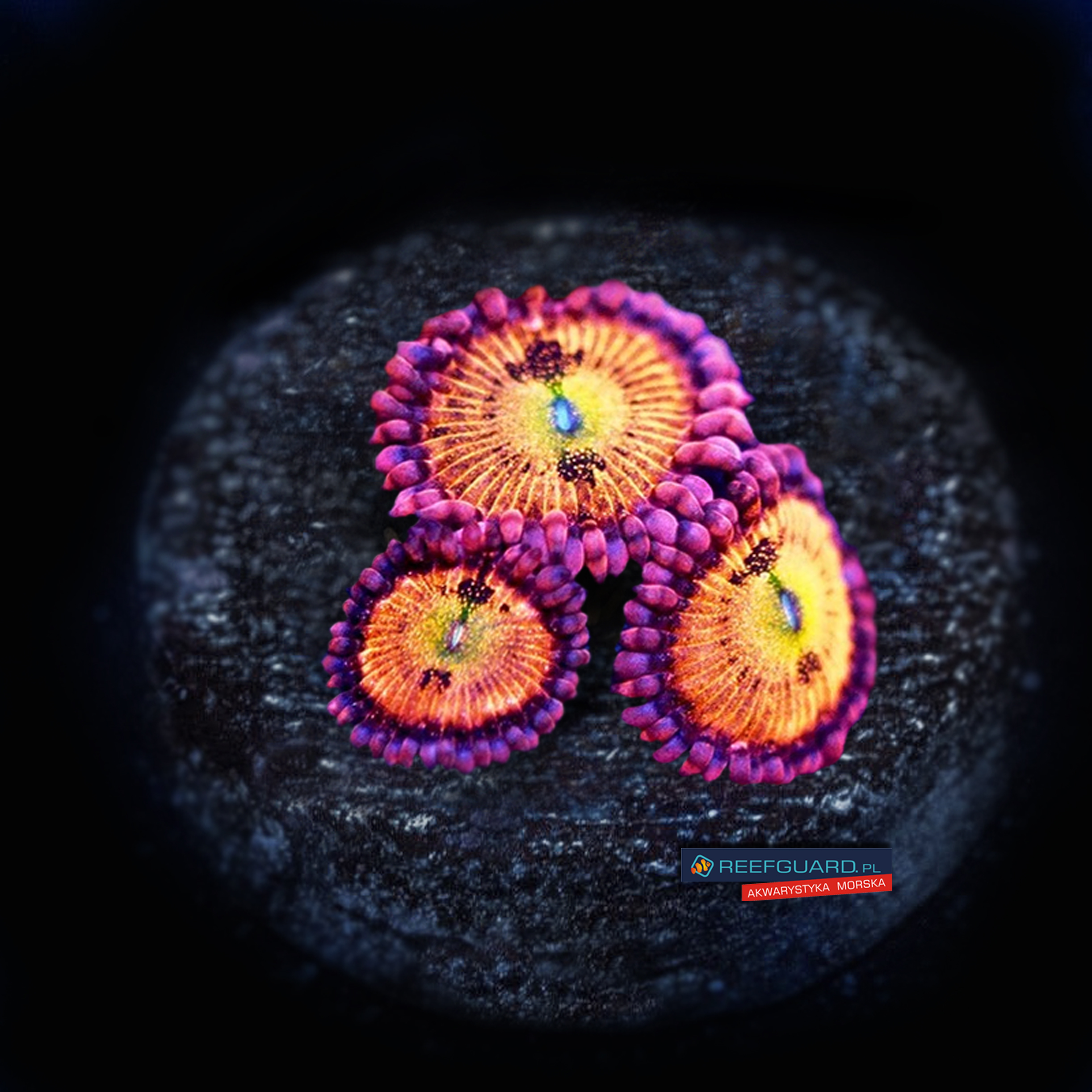 Sakura Sunrise Zoa Zoanthus 3 polipy to koralowce miękkie należące do rodziny Zoanthidae, potocznie nazywane Zoa. Nietypowy Zoanthus z odmiany AOI Zoa Zoanthus, posiada środek polipu charakterystyczny dla tejże odmiany w kolorze pomarańczowym. Wypełnienie przechodzi z barwy pomarańczowej bazowej do fluo różowej, kończącej się otoczką. Polipy maja kolor różowy.