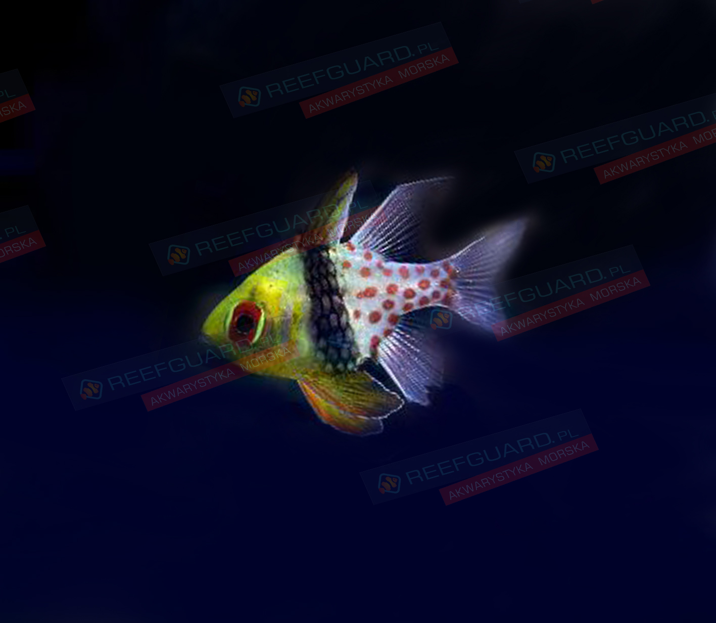 Sphaeramia nematoptera piżamka Spotted Cardinalfish bardzo spokojna rybka, idealnie pasująca do wielogatunkowego akwarium. W naturze rybki te pływają w stadach i tak też powinny być trzymane. Apogon jest bardzo piękną i spokojną rybą. Do trzymania kilku okazów ryb odpowiednie jest akwarium o pojemności 150 litrów lub więcej. W zasadzie ta ryba będzie służyć jako dekoracja w prawie każdym akwarium morskim. Ryby mają jedną ciekawą cechę, potrafią długo pozostawać w bezruchu, praktycznie będąc w jednym miejscu.