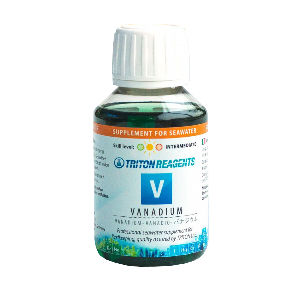 Triton V Vanadium 100ml suplement do wody morskiej z Wanadowym pierwiastkiem śladowym. Korzystny dla ogólnego stanu zdrowia gąbek, osłonic i koralowców SPS / LPS. W połączeniu z testowaniem TRITON Lab ICP akwarysta może teraz dokonywać ukierunkowanych korekt dla jednego elementu. Tylko TRITON zapewnia zaawansowaną hodowlę koralowców w akwariach z łatwą obsługą. Aby uzyskać informacje o dawkowaniu, sprawdź zakładkę DAWKA w swojej analizie ICP.